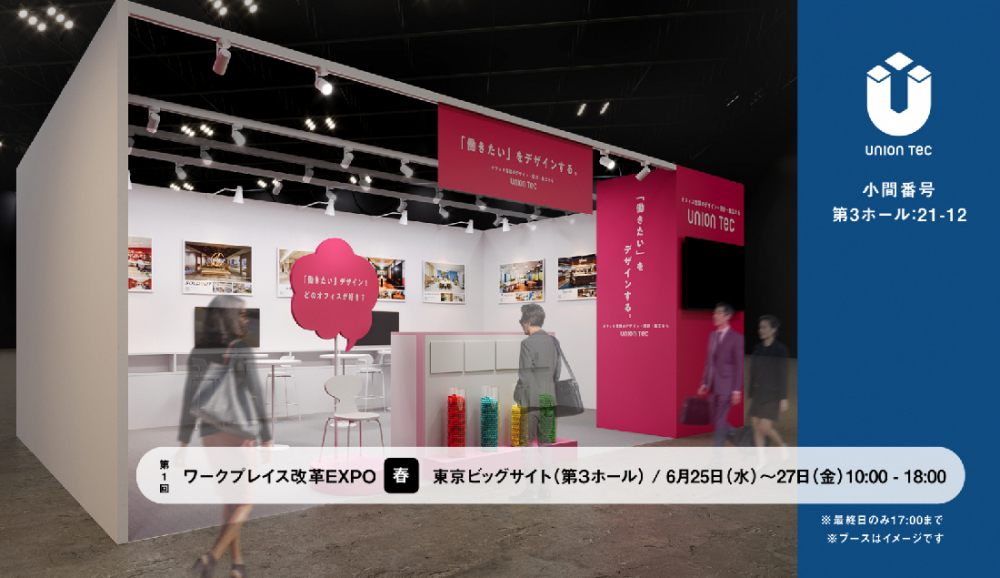 オフィスや商業施設の空間づくりを一気通貫で手がけるユニオンテック株式会社(本社:東京都渋谷区、代表取締役社長:大川祐介)は、2025年6月25日(水)〜27日(金)に東京ビッグサイト(第3ホール)で開催される「第23回[東京]総務・人事・経理Week【春】」内「第1回 ワークプレイス改革EXPO【春】」へ出展します。