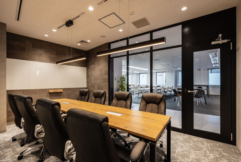 素材を絞ってデザインすることで、万人に受け入れられやすいシンプルでスタイリッシュな空間としました。8名会議室には、デザイン性&メンテナンス性に優れたガラスのホワイトボードを設置しました。