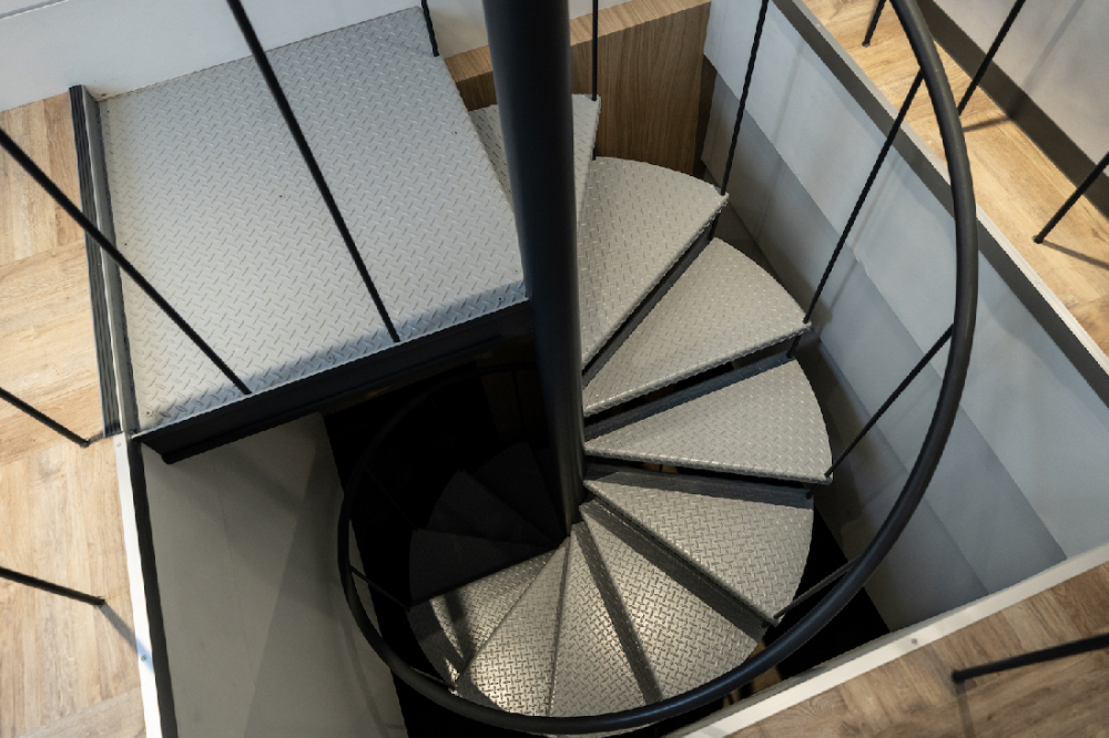 1Fの狭さを解消して機能的に利用できるようにBFと1Fを螺旋階段を新設して繋ぎました。