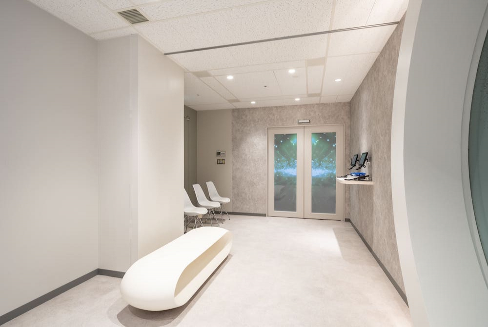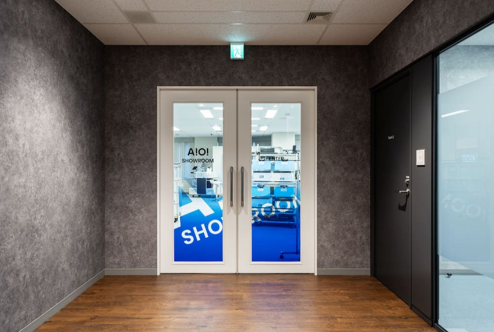 通路の奥にはショールームを併設しています。こちらで実際にAIOIの最新テクノロジーを体験していただけます。