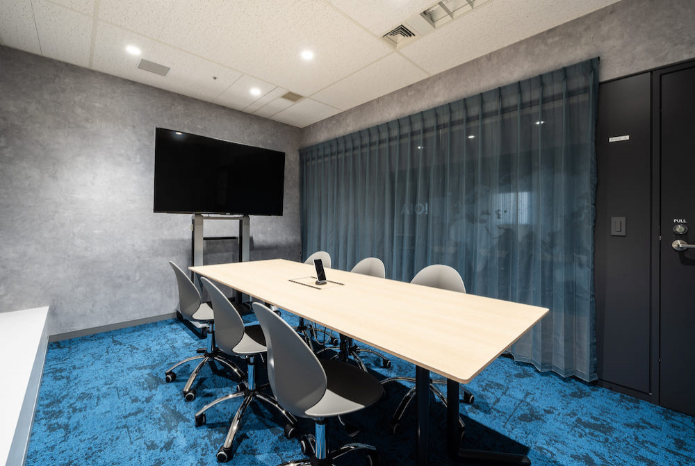 ミーティングルームはAIOIの入退室管理システムを導入し、カードをかざすと自動的に室内の照明が点灯します。こちらも来訪者に実際に体験していただくことが可能になっております。