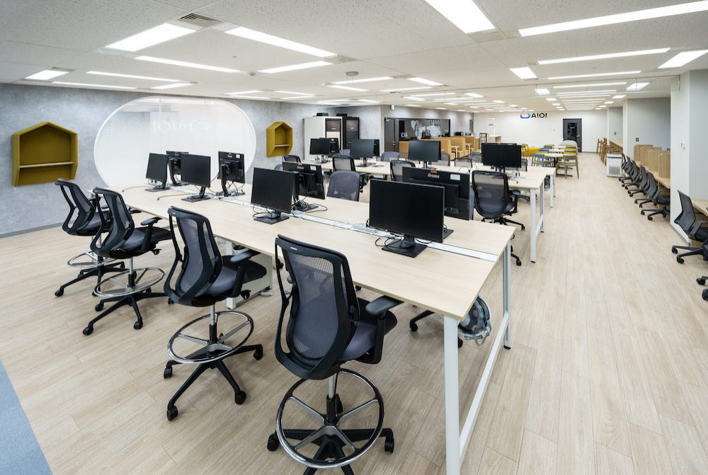 株式会社アイオイ・システム様の創業40年という節目に、ブランドをリニューアル。日本発のアイオイではなく“世界のAIOI”としてロゴも一新し、オフィスもリニューアルしました。別拠点にあったオフィス、ショールーム、ラボを今回の移転で同拠点ワンフロアにまとめ、生産性向上と社員同士のコミュニケーション活性化を図りました。また、革新的なテクノロジーを世界に発信し、来訪者にAIOIのテクノロジーを体験してもらえる空間づくりを行いました。
