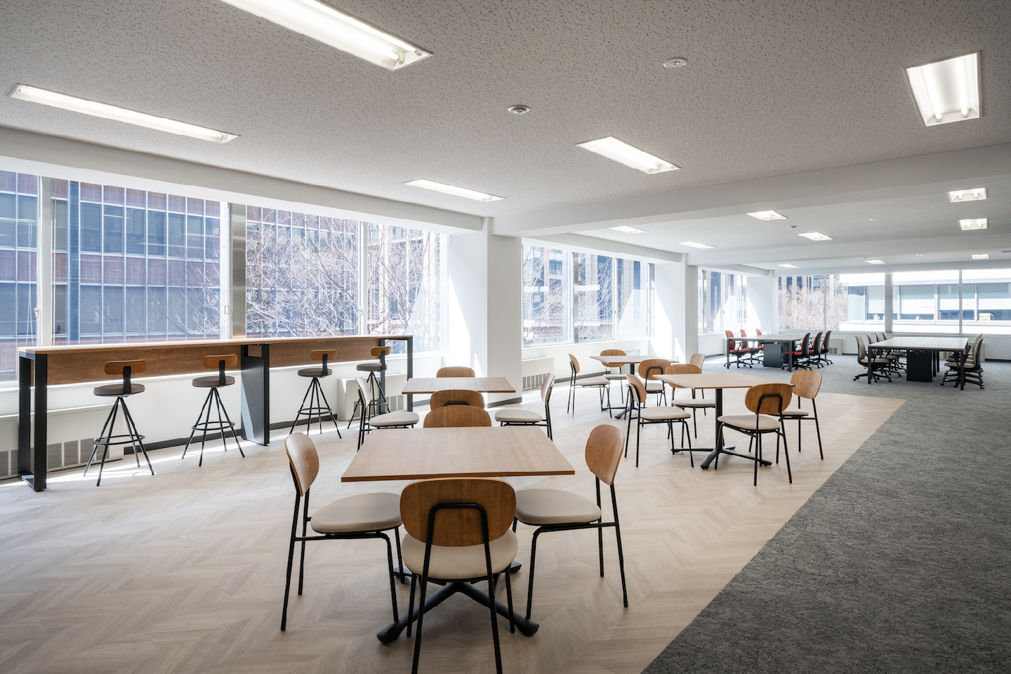 執務デスク以外にも、気分転換などでも利用できるカフェスペースを設置。ワークシーンに合わせて、働き方を選択できる空間としました。