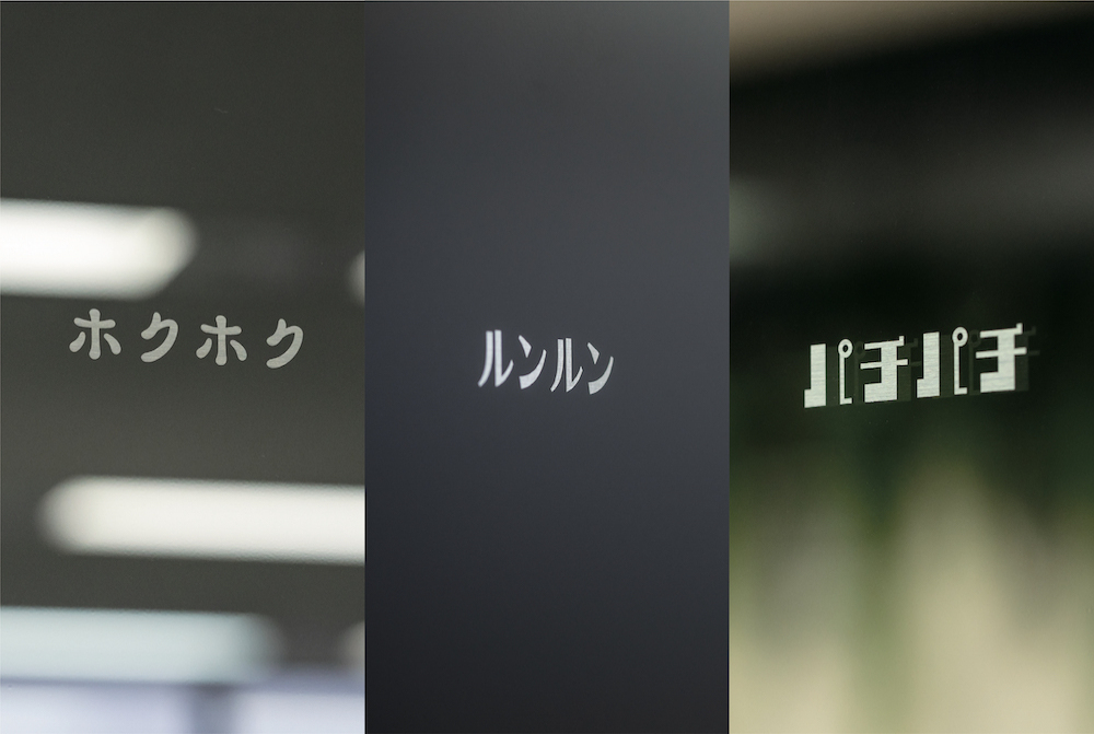 各部屋の室名サインは、「こんな気持ちになる部屋にしよう!」という思いを込め、特徴的なネーミングとフォントでデザインしました。