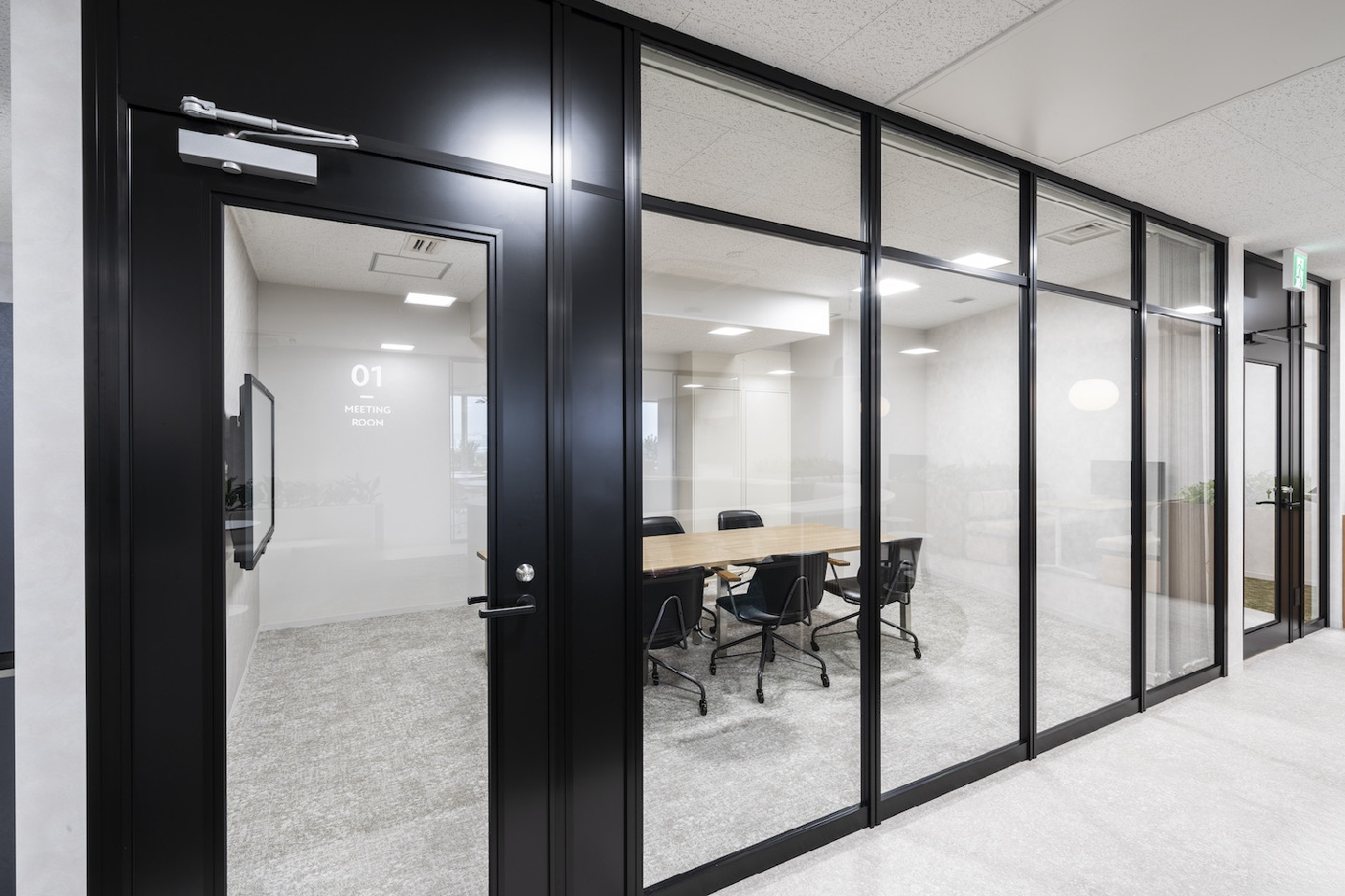2つの会議室は、ガラスで仕切られることですっきりとした印象に。チェアは、競馬関連会社らしく「馬」をイメージしたものを使用しています。