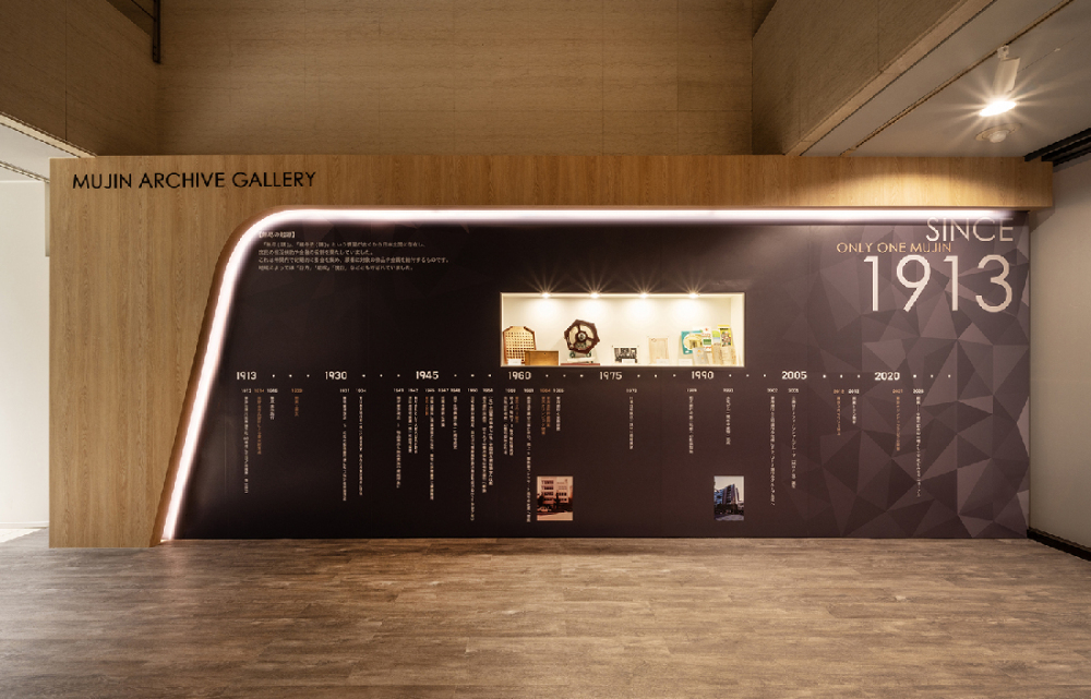 ヒストリーパネルは、1913年から続く歴史の重みを洗練されたグラフィックデザインで表現しました。ニッチには当時のアイテムをディスプレイし、時代を感じさせる趣を加えています。