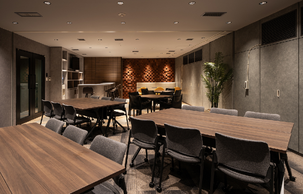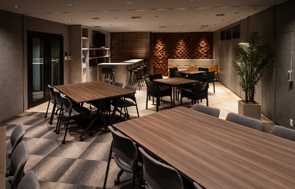 元会議室エリアをリフレッシュスペースに改装し、スライディングウォールで隣室と一体化できる可変性を持たせました。カフェ&バーをイメージした特別な空間は、休憩だけでなくセミナーやイベントにも対応可能です。