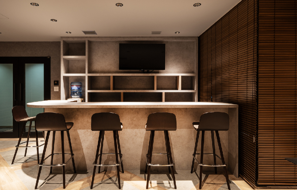 今回のプロジェクトでは、自社ビルの内装リニューアルを実施しました。既存の床材を残しつつ、トレンドの素材を融合させ、シックで重厚感のある雰囲気を演出。