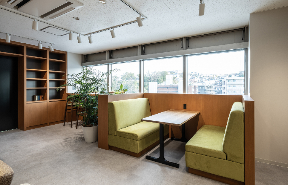 オープンなテーブル席や個を重視したカウンター席に加え、窓際には自然光を感じられるボックスタイプのソファ席を配置しました。