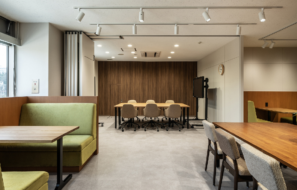 社員満足度や生産性の向上、技術者が集う拠点として喜びを感じる空間を目指し、大会議室をカフェエリアへリフレッシュ改装しました。