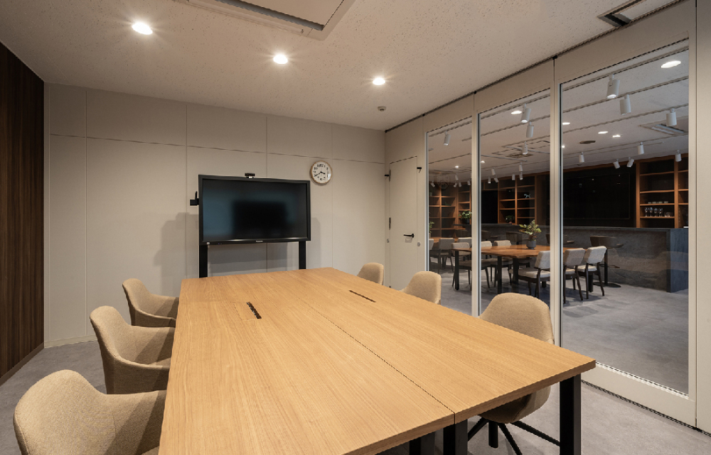 壁で仕切られたスペースには可動式パーテーションを採用し、必要に応じて完全個室の会議室としても利用できるようにしました。