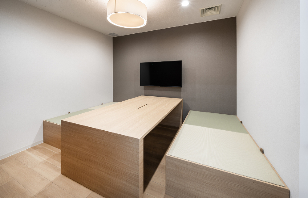 カフェエリアとは別区画に、畳を用いたスペースを設置しました。