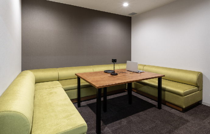 ソファがけの個室。グループミーティングやオンラインミーティングに活用できます。