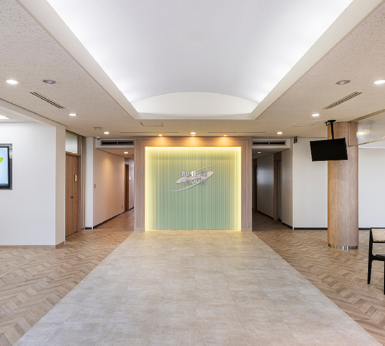 エントランスはつくばの豊かな自然環境をそのまま取り込んだようなデザインを取り入れ、お客様や入社を検討する方々を含む来訪者へのイメージアップを目指しました。