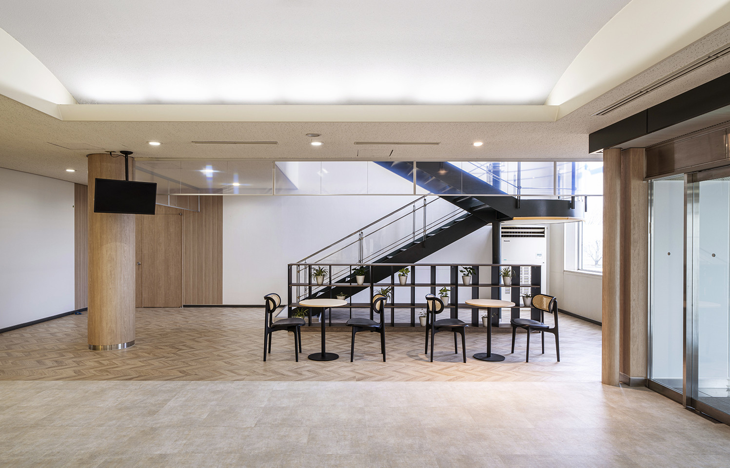 今回のリニューアルでは、来訪者様へのイメージアップと社員の皆様のウェルビーイングの促進を目指しました。コミュニティプラザと同様に、働く人々のコミュニケーションが向上し、訪れる人々が落ち着く空間づくりを踏襲。