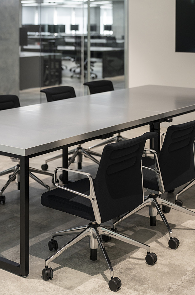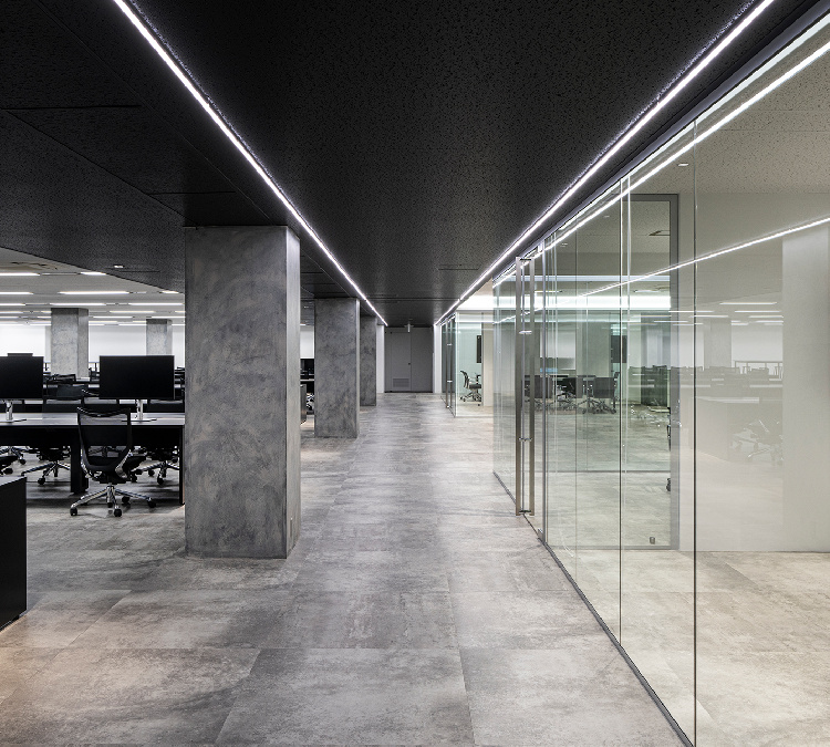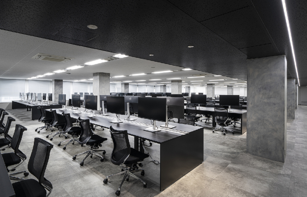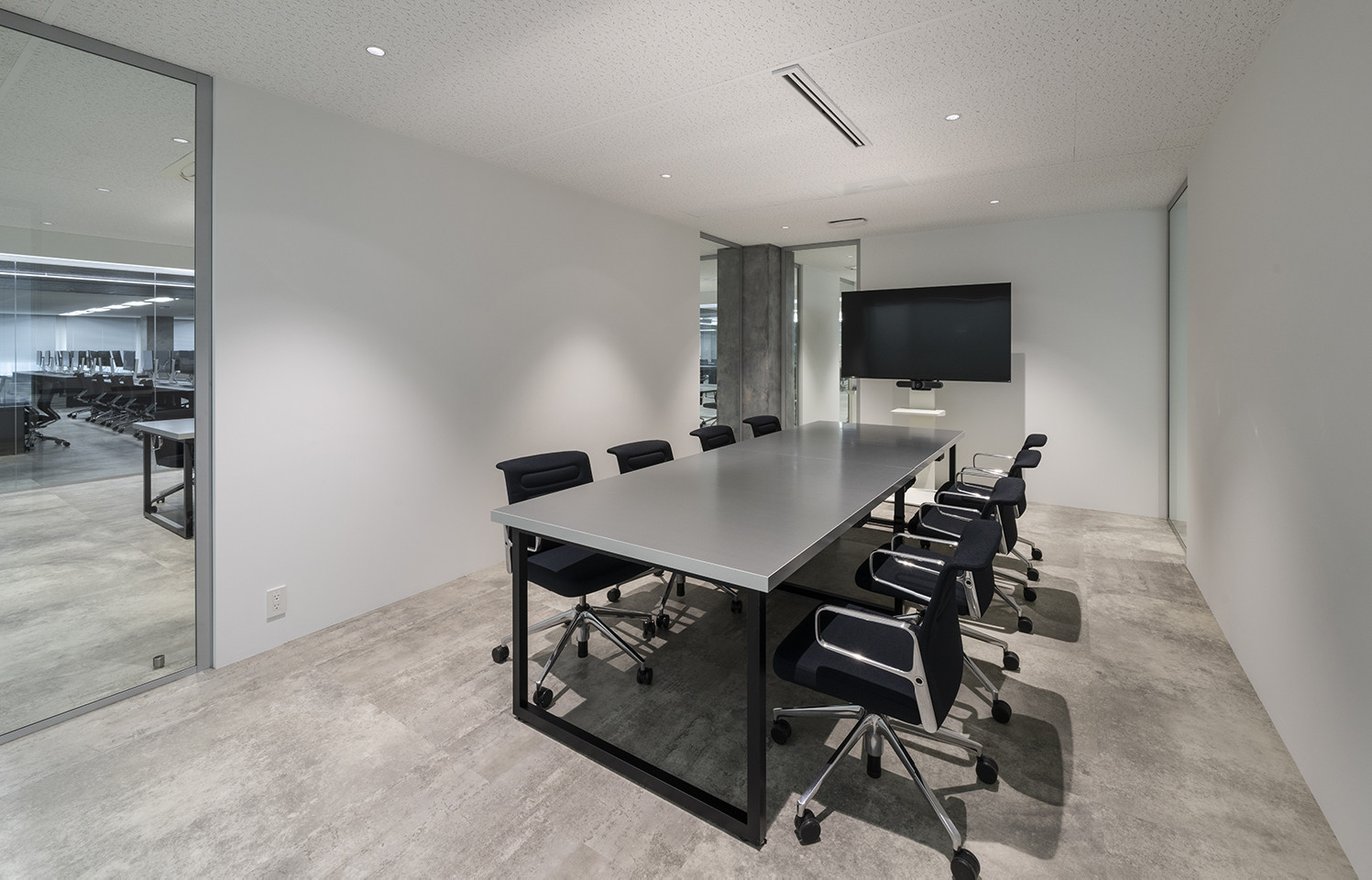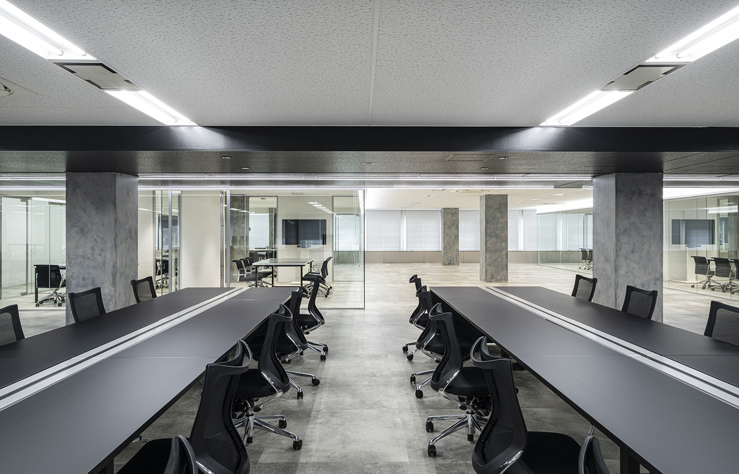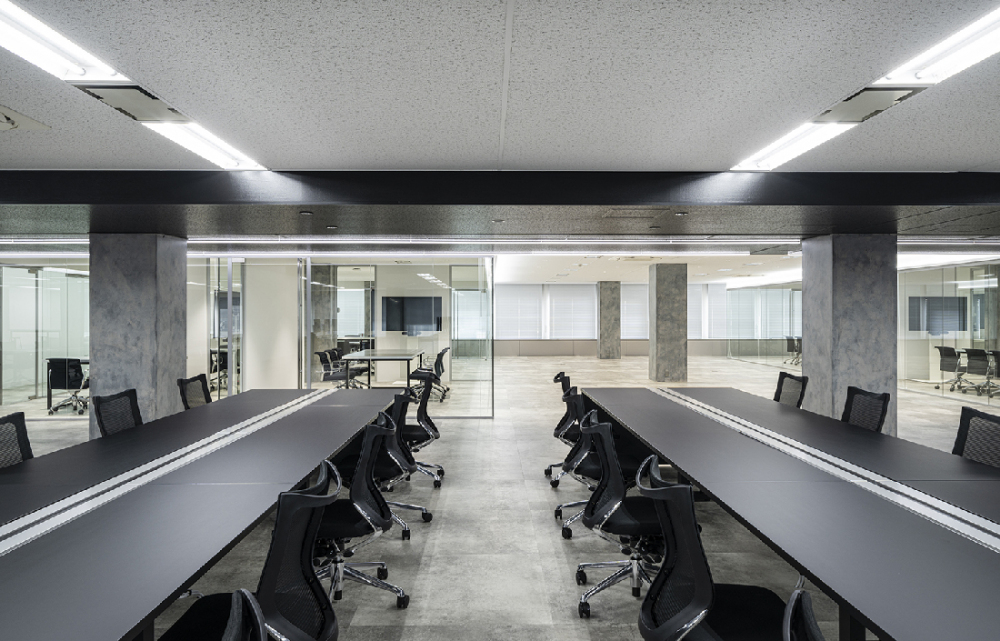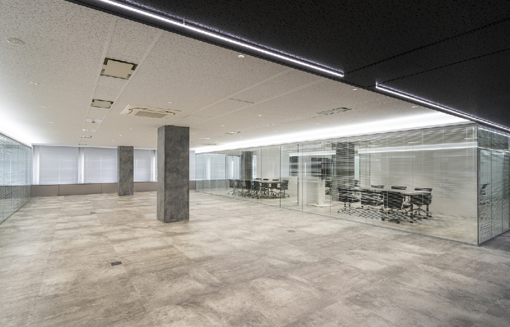 事業の成長とカンパニーバリューの向上を目的にオフィスをリニューアル。執務エリア、ミーティングスペース、来客スペースを主にガラス張りで仕切り、そこで働く人々や活気を見せる「ショーケース」のような空間に仕上げました。強化ガラスとライン照明を組み合わせ、オフィス全体が見渡せる開放感を実現し、シャープなデザインに仕上げています。