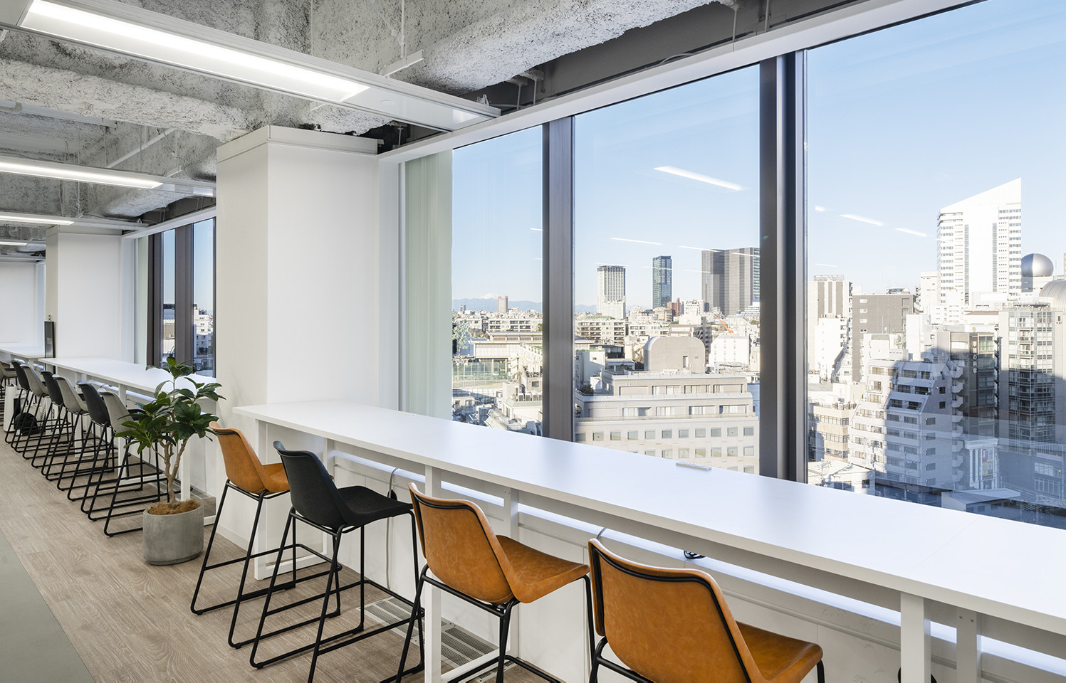 固定席だけではなく、窓際にはカウンター席も設置。自由度の高いワークスタイルにも対応しています。
