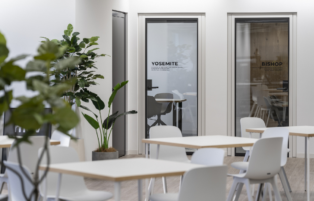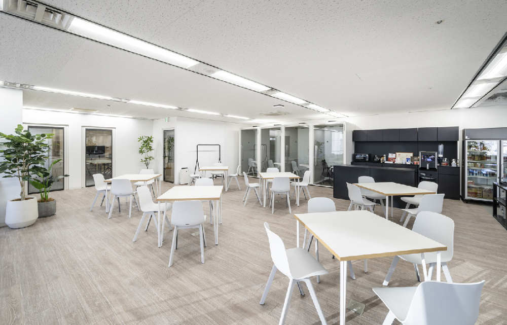 クールでありながらも温かみのある空間が、店舗支援やインバウンド事業を展開する急成長企業の拠点にふさわしい佇まいを生み出しています。