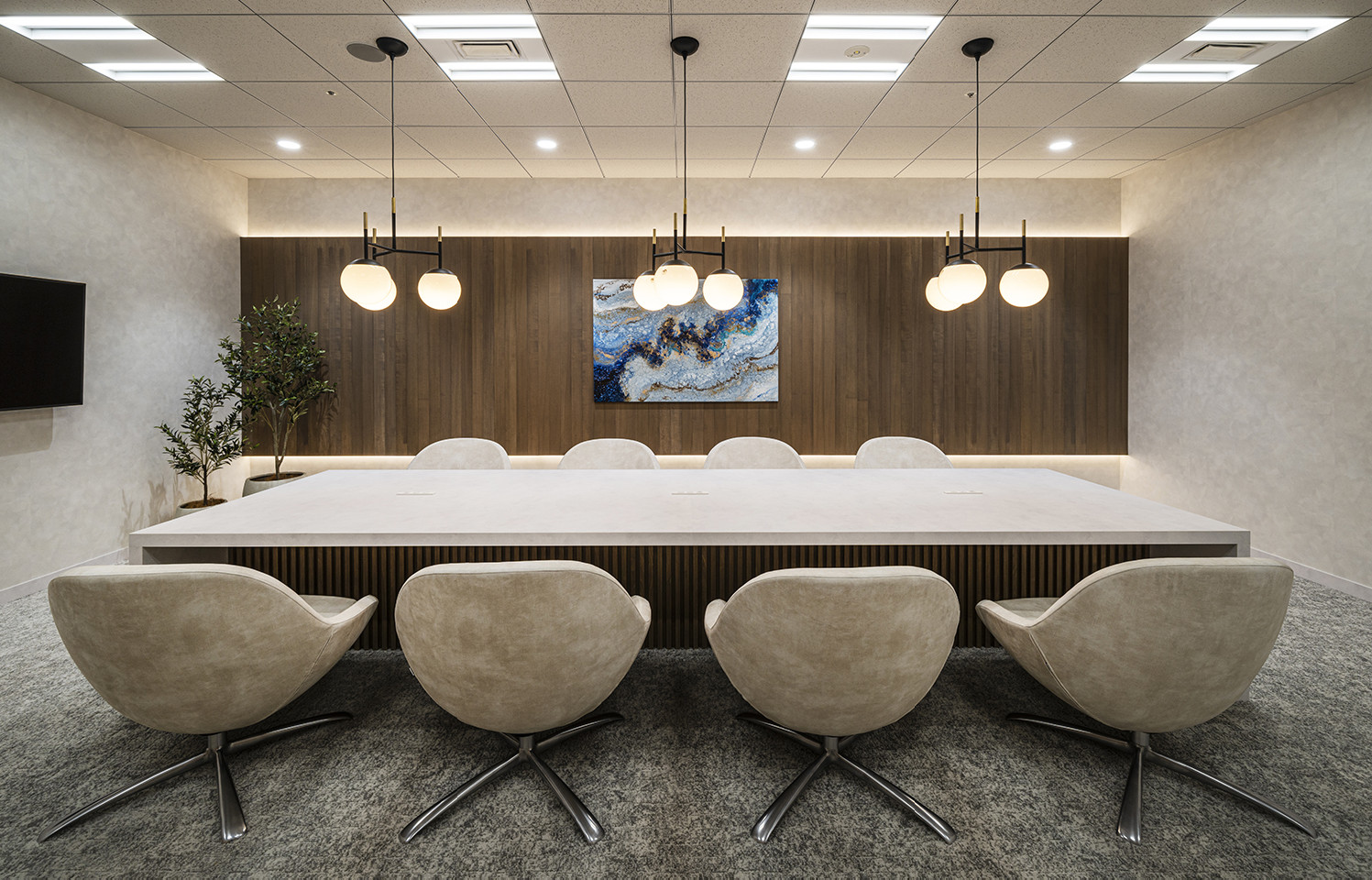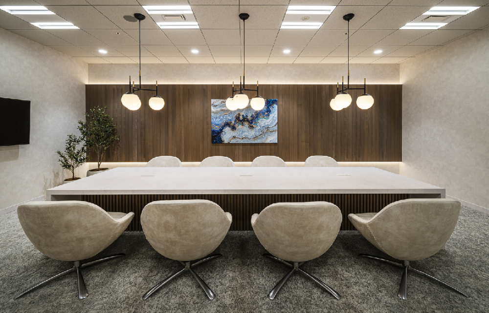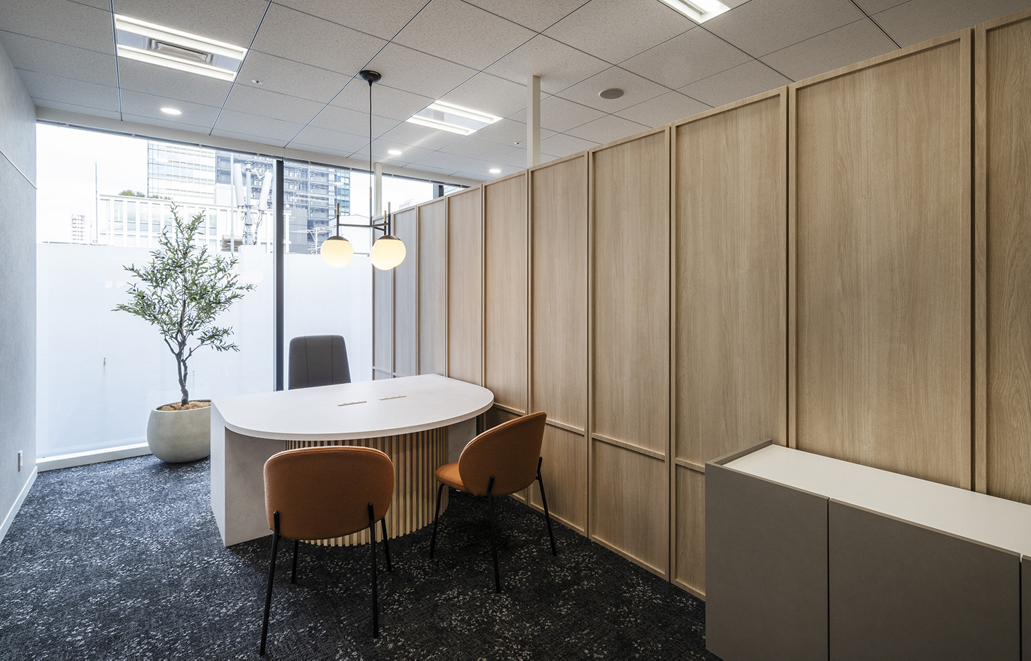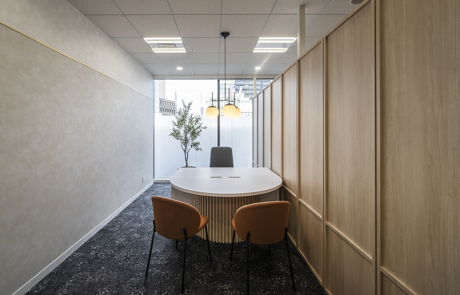 ゆったりとしたコミュニケーションができる会議室空間をデザインしました。