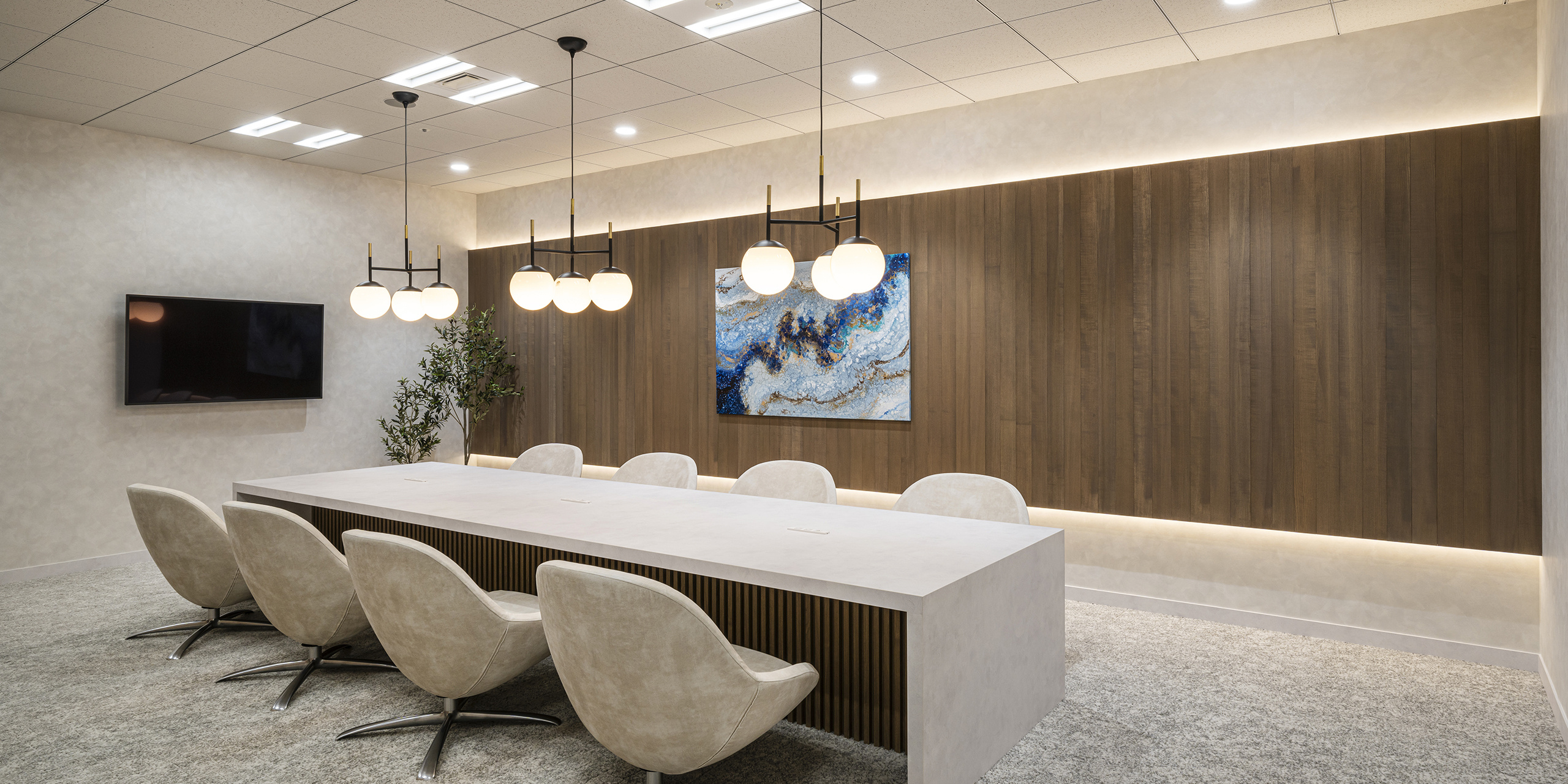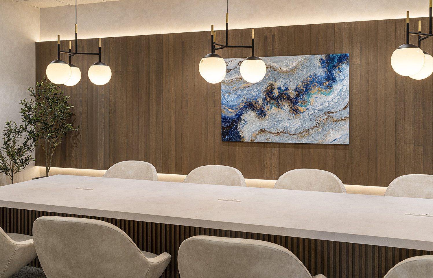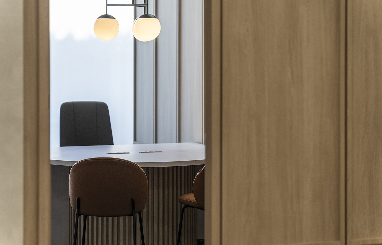 ゆったりとしたコミュニケーションができる会議室空間をデザインしました。