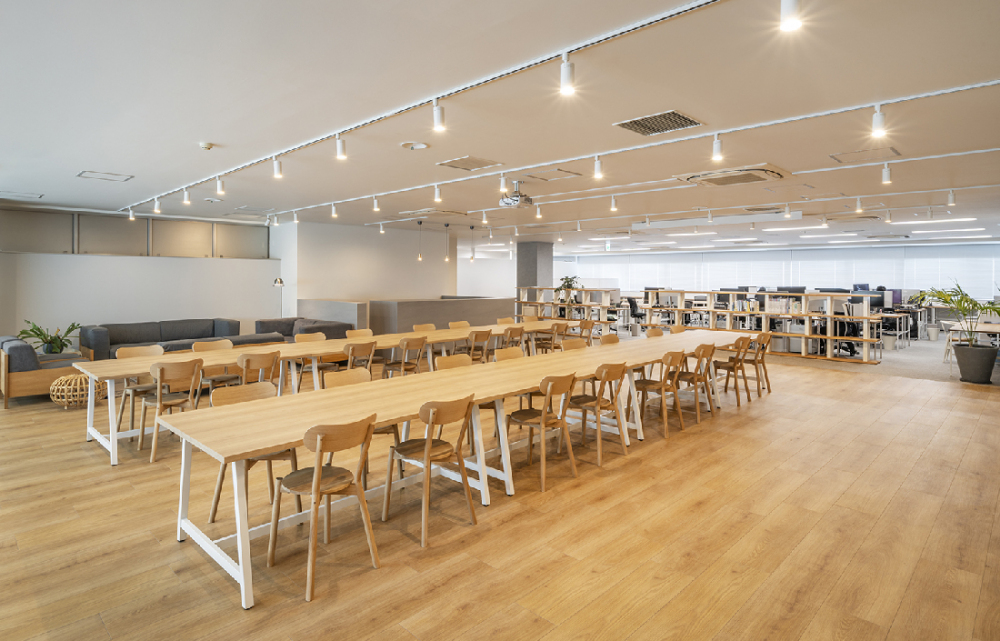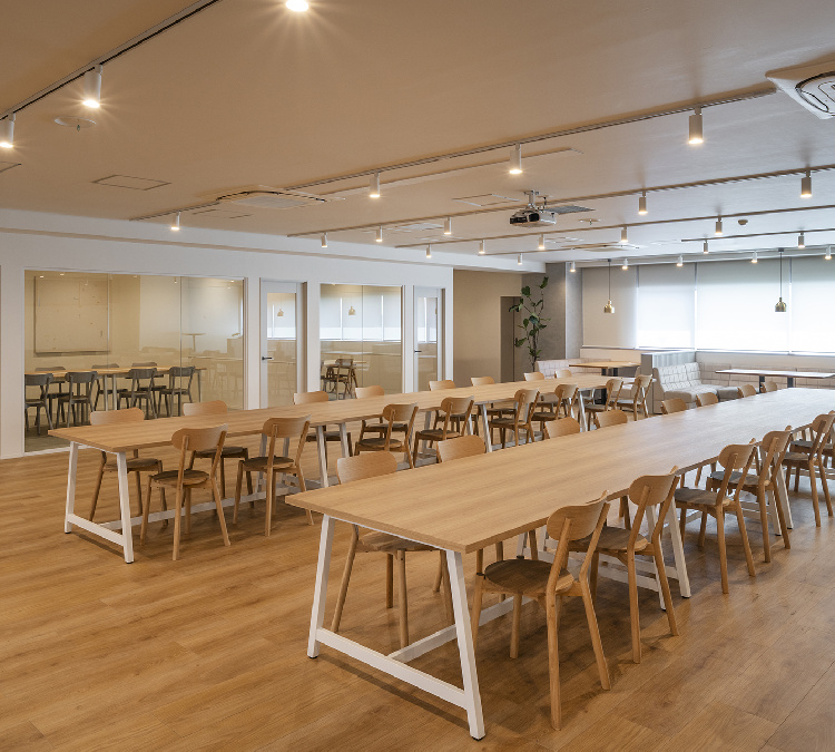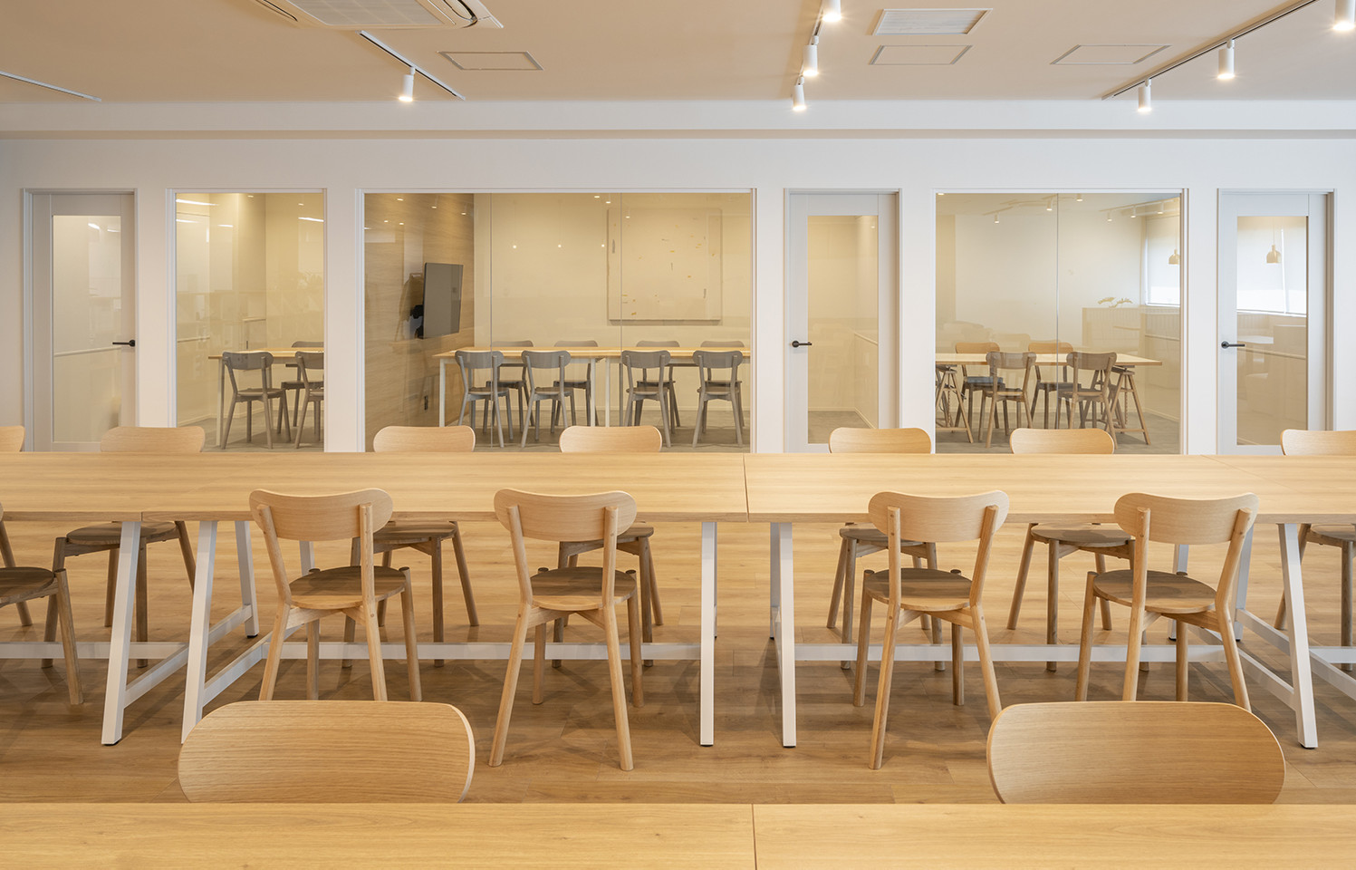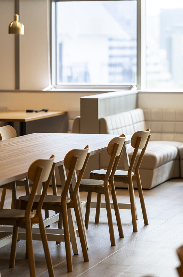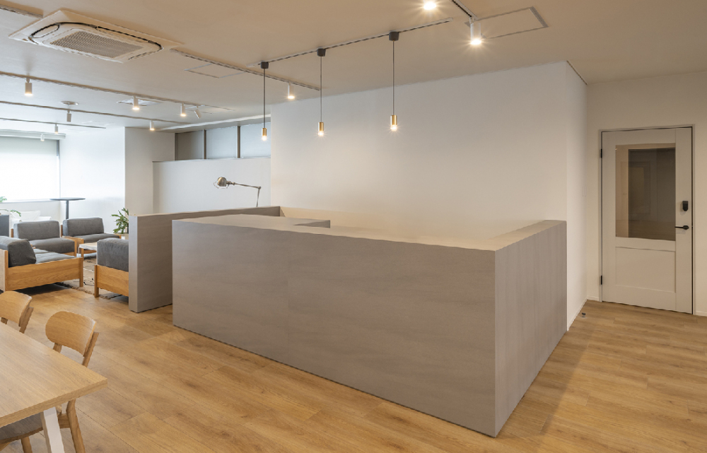 扉を開けた瞬間に広がる「まるで家に帰ってきたような心地よさと温かさ」をテーマに、つながりや交流が自然と生まれ、チームワークが育まれる空間を目指して設計しました。