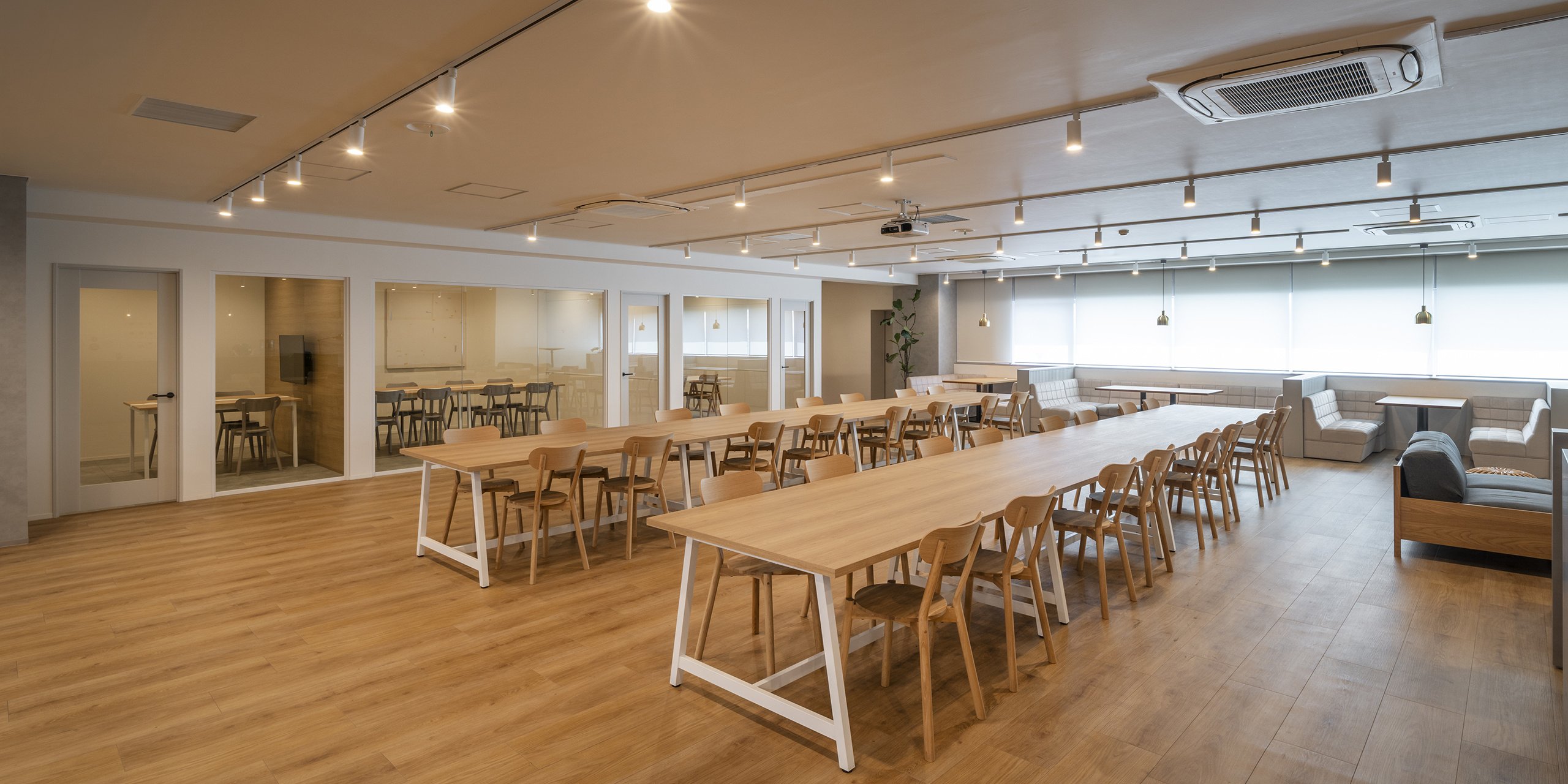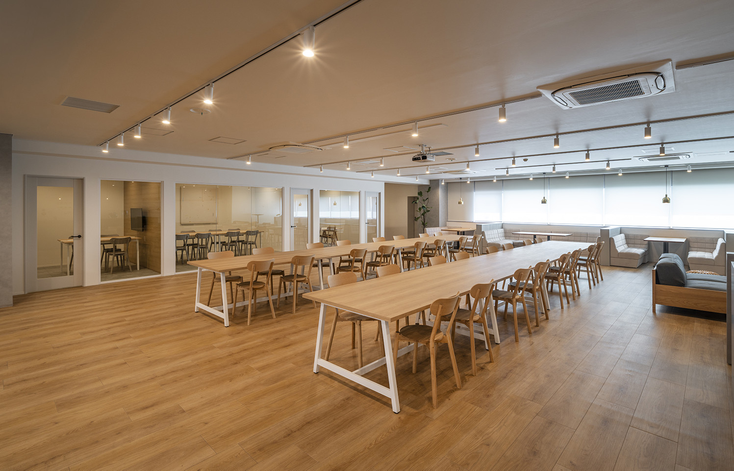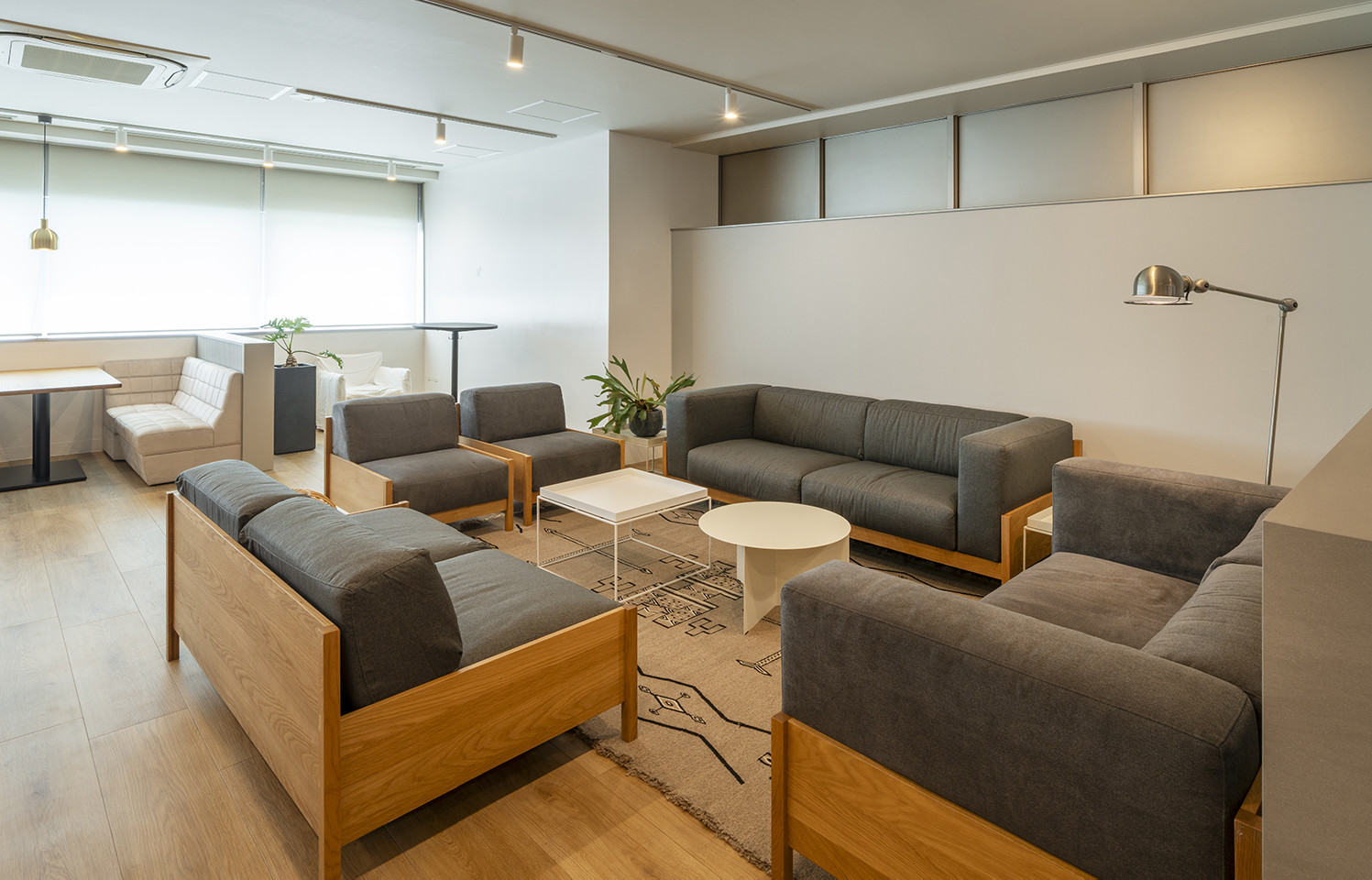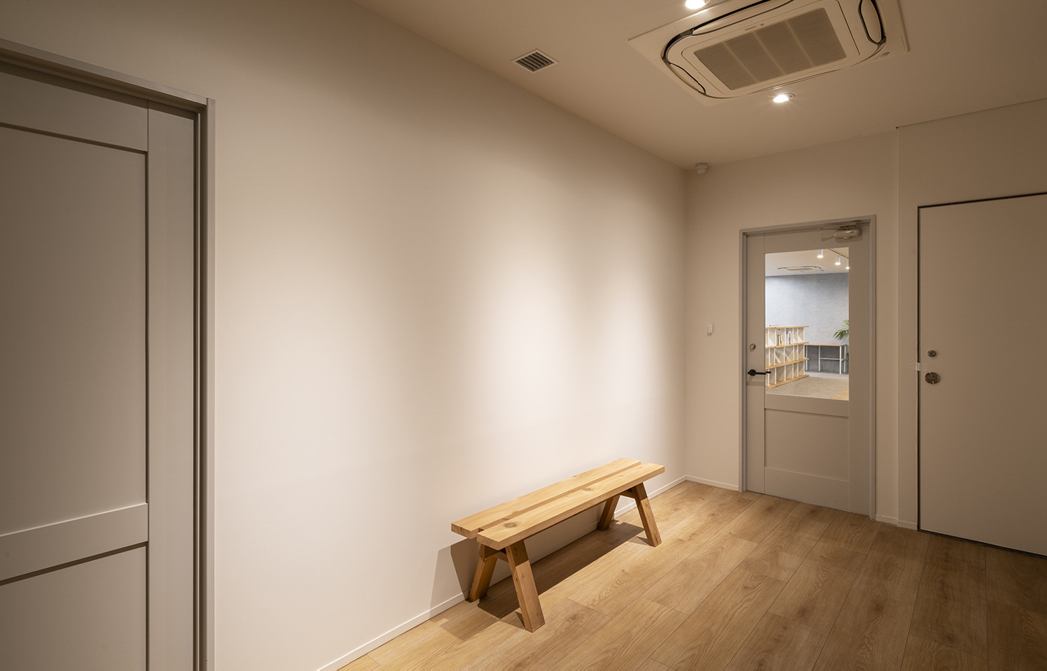 扉を開けた瞬間に広がる「まるで家に帰ってきたような心地よさと温かさ」をテーマに、つながりや交流が自然と生まれ、チームワークが育まれる空間を目指して設計しました。