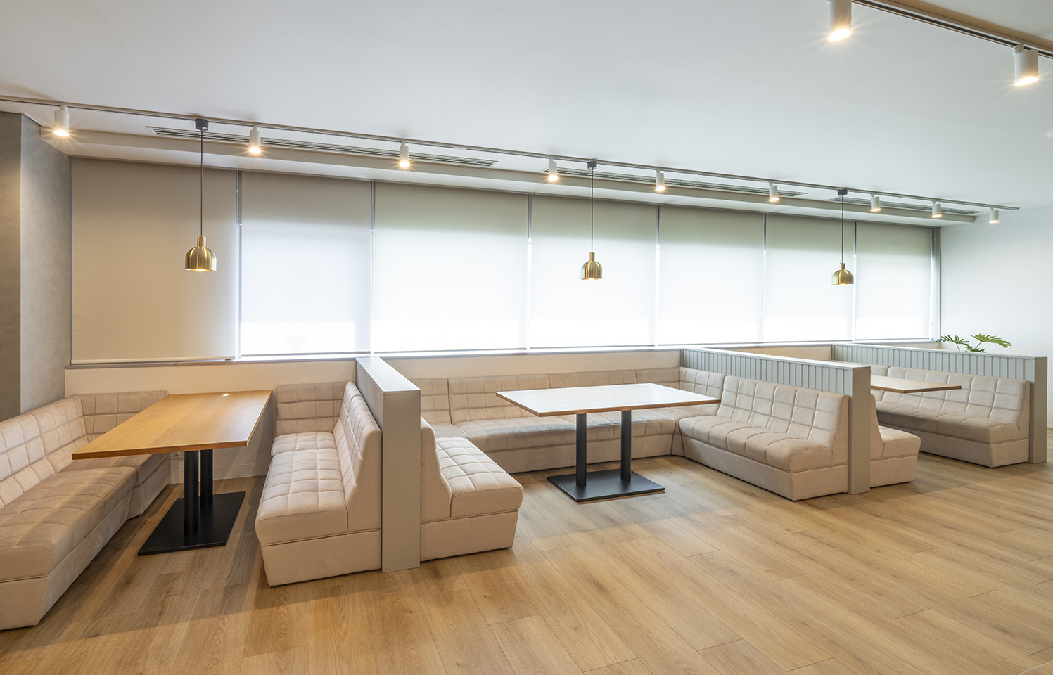 また、四面を囲むように配置したソファは自然と会話が生まれる談笑スペースとなり、気分を上げるカフェカウンターは、日々の始まりをあたたかく彩ります。