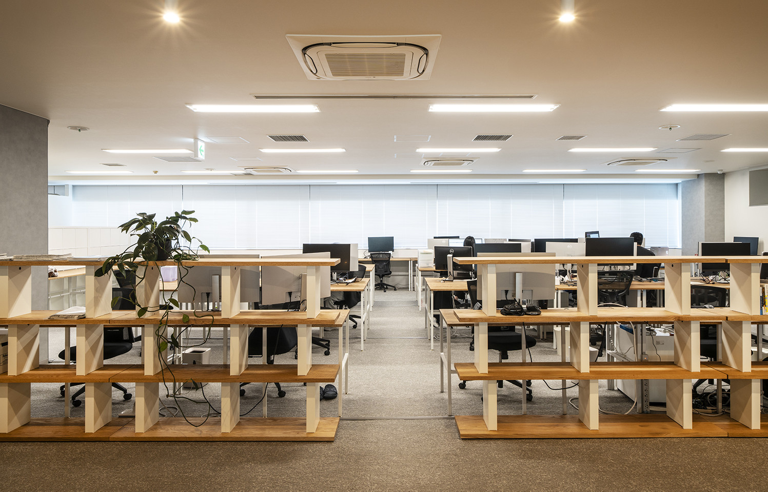 信頼し合い、助け合う、まるで家のようなオフィスを体現するべく、低彩度の色使いと素材感にこだわり、心地よい空間をつくりました。