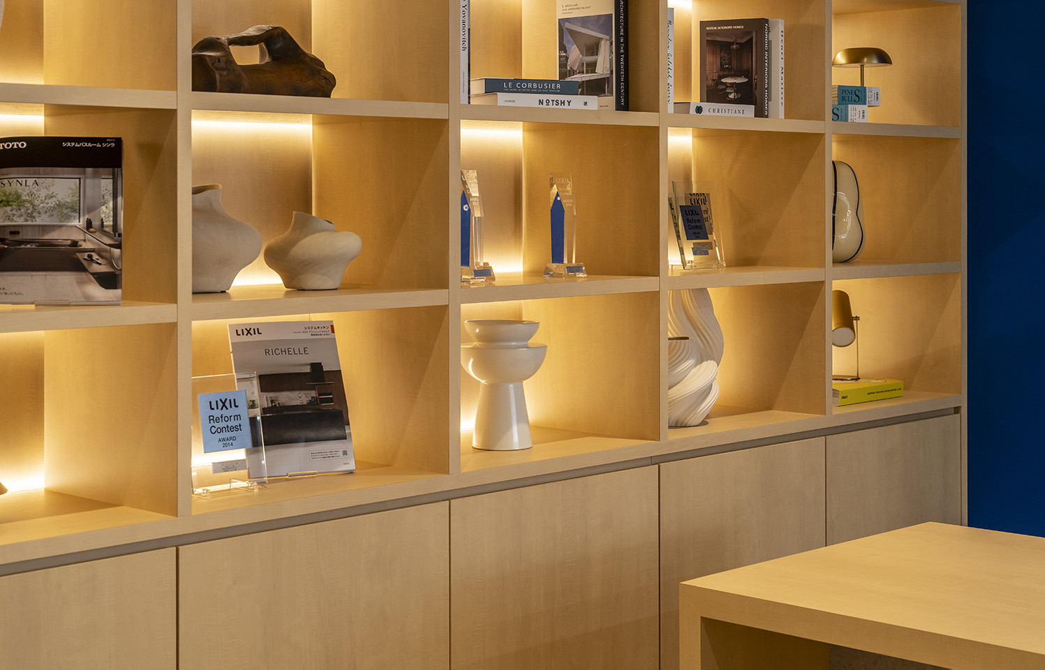 訪れる人々が自然にコミュニケーションを生むようなデザインを意識し、水回りリフォーム会社らしい清潔感のある明るいオフィス空間に仕上げています。