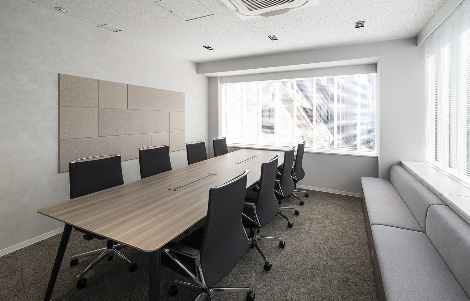 座席以外にベンチシートを設けた会議室。ゆとりのある空間になっています。