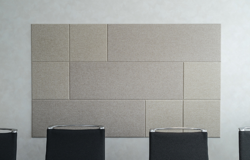 吸音パネルを組み合わせてディスプレイし、モダンアートのような表現に。
