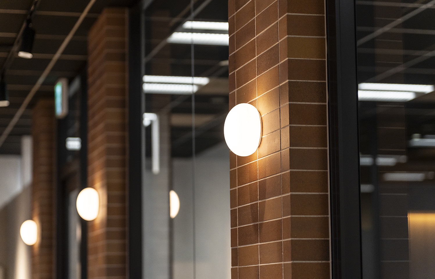 街灯のようなレンガづくりの柱。モダンなイメージを深く演出しています。