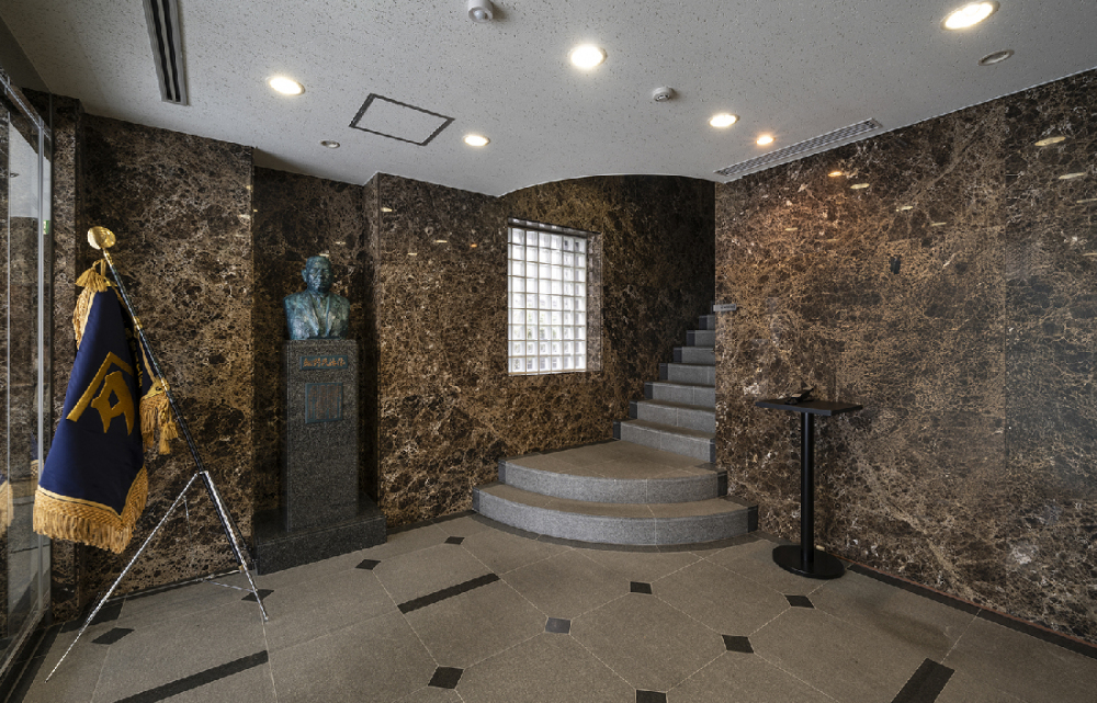 1階エントランスはあえて手を加えず、歴史の趣をそのまま残しました。改修を施した2階との対比により、その空間に独自の魅力と奥行きをもたらしています。