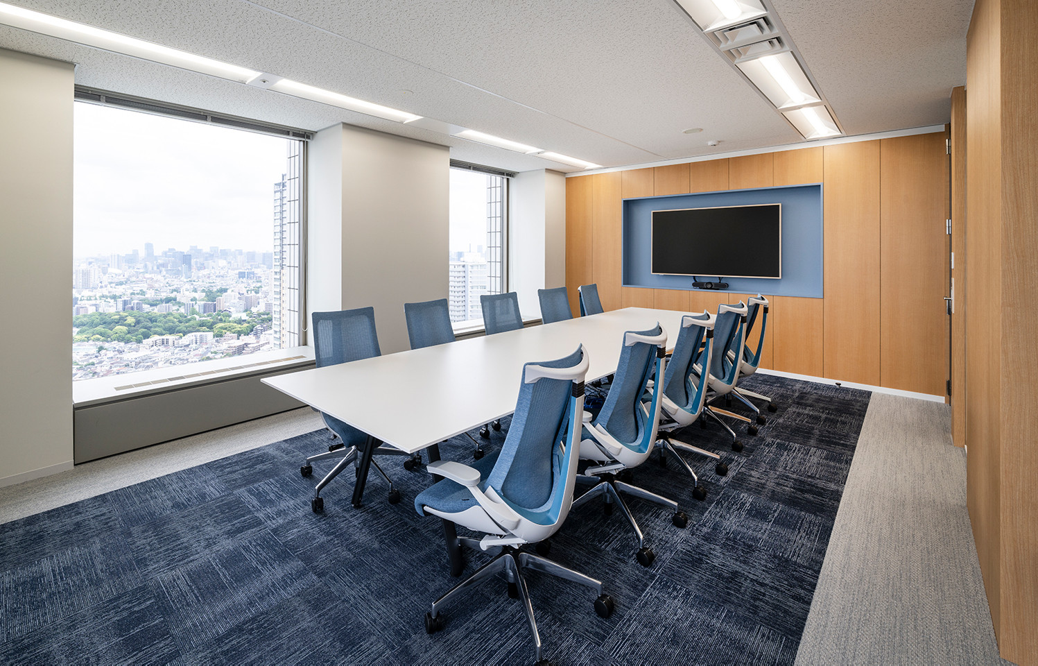 品格のあるカーペットが美しい役員用の会議室。シックで落ち着いた雰囲気を演出しています。