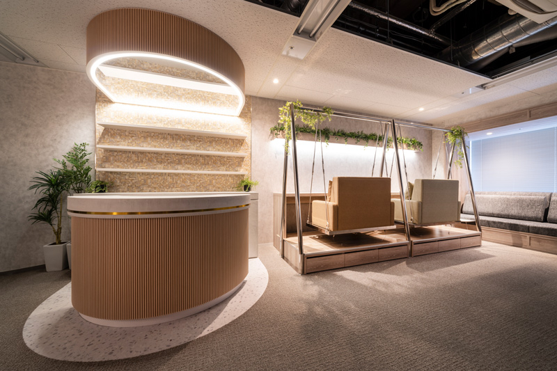 また、壁などの目線をさえぎってしまう隔たりを無くし、メンバー同士のコミュニケーションが自然に発生することで交流を促しています。社員一人一人の魅力が混ざり合い、新たなイノベーションが生まれる空間を目指しています。