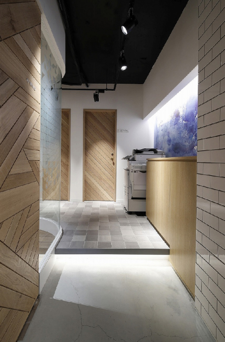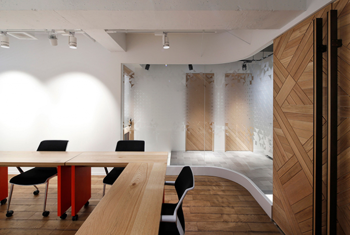 力強いカラー同士を組み合わせることで生まれるコントラストをデザインとして取り入れた、洗練された空間デザイン。コーポレートカラーでもある赤いインテリアをアクセントに、メリハリの利いたデザインが印象的です。