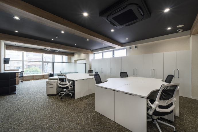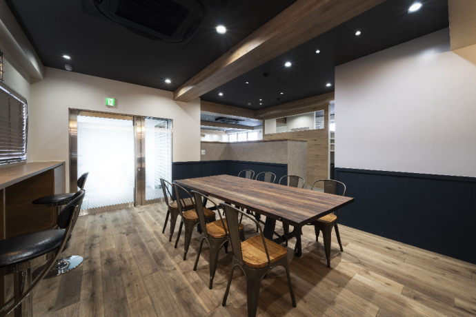 2箇所ある入口を利用し、カフェミーティングスペースとワークスペースの入口を分け、動線をうまく考慮しました。