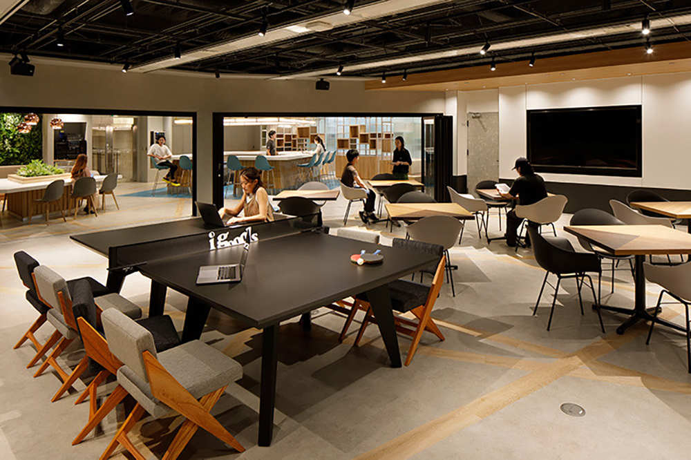 フルオーダーメイドのオリジナルグッズ、ノベルティのデザイン・製造・販売及び輸出入を行うアイグッズ 株式会社様のオフィスは、社員を幸せにし、会社の「らしさ」を体現するオフィス空間です。