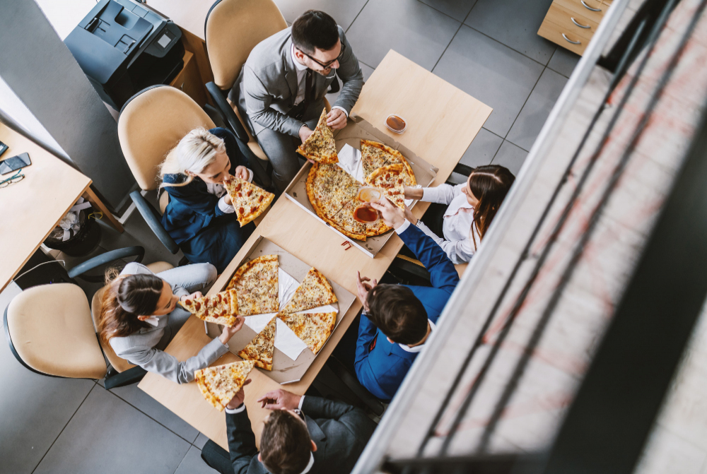 社員食堂とは少し意味が異なりますが、外部に弁当を注文するという方法(オフィスに厨房や流し台をつくることが難しくても、これならば飲食スペースを確保するだけで導入可能)