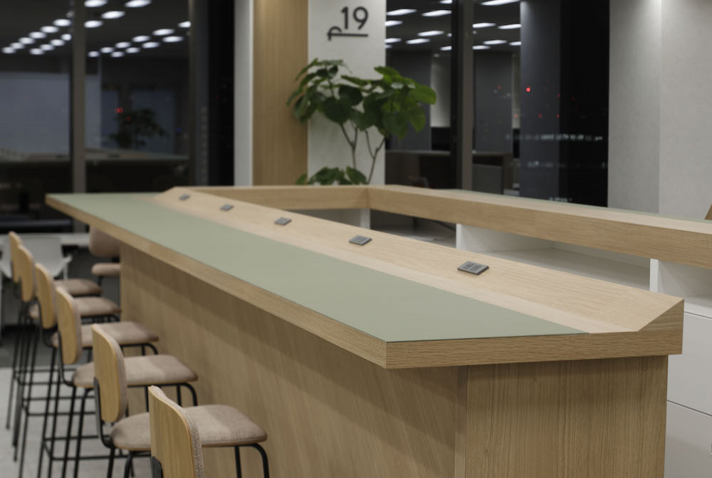 カウンター型執務スペースは、近年人気を集めるオフィスレイアウトの一つです。カウンター型の配置では、スタッフ同士が近くに座り、コミュニケーションがスムーズに行えます。情報共有や意思の疎通が容易で、チームの協力やコラボレーションに大いに役立ちます。一方、隣のスタッフとの距離が近く、周囲の視線や雑音が気になることがあります。集中力や個人的なタスクにおいては、プライバシーの欠如が懸念されます。