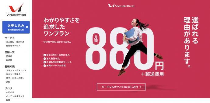【880円で法人登記】東京(渋谷)・広島の格安バーチャルオフィス「バーチャルオフィス1」( https://virtualoffice1.jp )