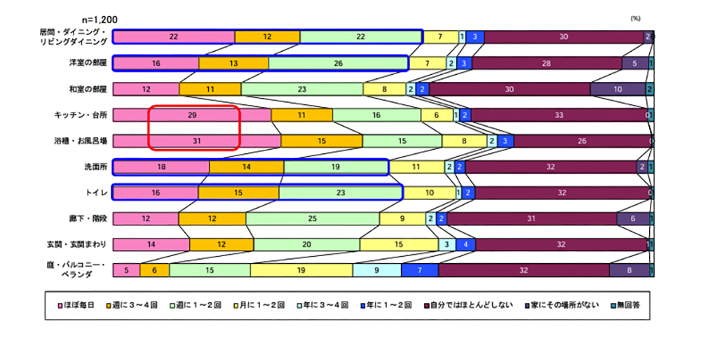 引用:日本リサーチセンター・NOS自主調査『家の掃除についての調査』より