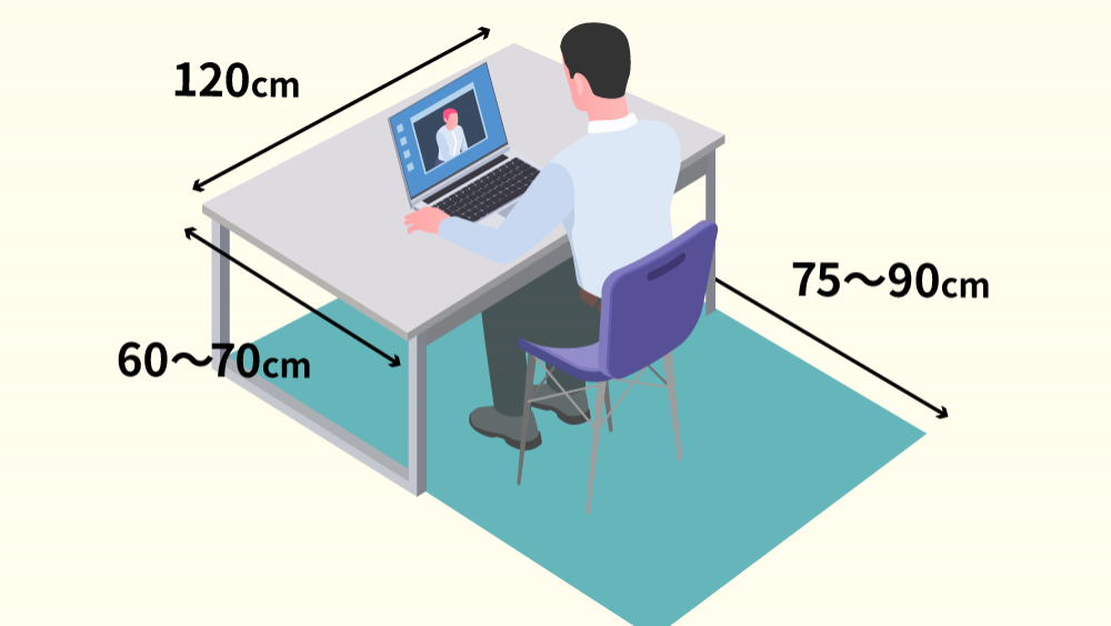 左図:横(同向型)…60cm〜90cm程度のスペースが確保されていれば、従業員はあまりストレスを感じないと言われています。