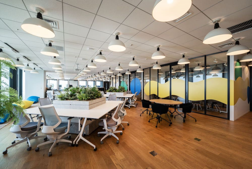 オフィスレイアウトは、オフィスの雰囲気を左右するものです。例えば、従来型の机を並べて島を作るタイプのオフィスと、丸型机なども活用した開放的なデザインのオフィスでは、受ける印象はガラッと変わります。