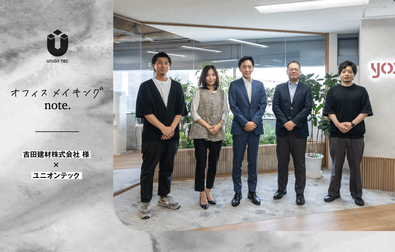 “こんな会社にしたい”と思うイメージ、社員の働き方改善など、お客様が思い描くご要望に対し、内装デザインを通してユニオンテックがどのようにお応えしたか? プロジェクトの裏側にある“ストーリー”を覗くことができる「オフィスメイキングnote.」の第9弾。