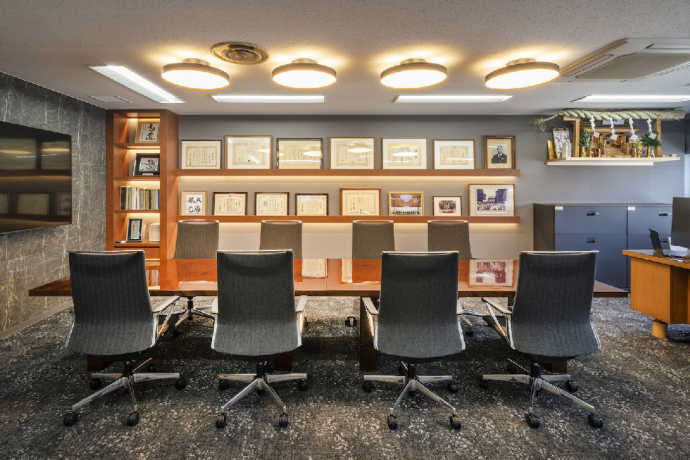 山本 エントランスの横にある会議室なので、一番利用頻度が高いです。私たちとしても、当社の歴史を見てもらいたいので、お客様との打ち合わせはなるべくこの部屋で行なっていますね。