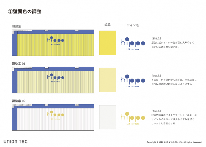 中村 そうでした。明るすぎるとチカチカしてしまうから、原色から遠い色合いにしましょうという話がありましたね。