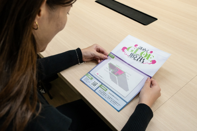 谷田 それに、社員がオフィスのことをすごく好きになっていて、このオフィスを使った謎解きを作った社員までいます。この用紙のQRコードをLINEで読み込むと誰でも挑戦できるので、「うちの会社、謎解きができますけど遊びに来ませんか?」と会社に来てもらう理由を作れるくらいになりました。