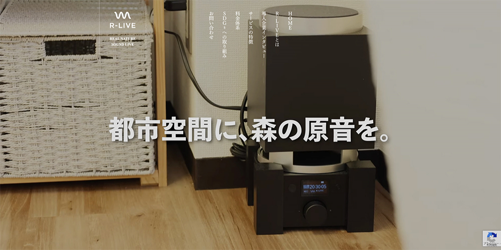 「R-LIVE」は、耳には聞こえない高周波を持つ自然の音をキャッチし、特定の空間で再生できるシステムです。季節や時間の変化をハイレゾの形で録音しているので、とてもリアルな音楽体験ができます。まるで実際の自然の中にいるかのような、心地よい音楽体験が魅力。特定のメロディに気を散らすことなく、リラックスしながら集中も深まるでしょう。「川のせせらぎ」や「小鳥のさえずり」「木々のざわめき」には、20kh以上の超高周波が含まれており、これが人の感覚にプラスの影響をもたらします。この自然の響きはオフィスの様々な場所での活用が推奨されています。