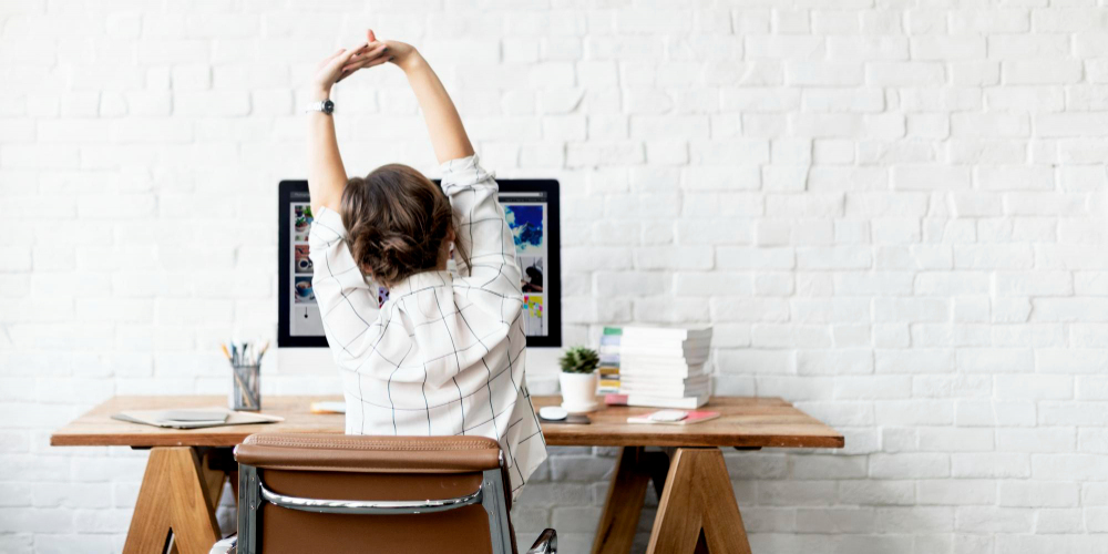 正しい姿勢でも、長時間同じ姿勢を続けると筋肉が緊張します。仕事の合間や昼休みなどに、簡単なストレッチを行って筋肉の緊張を解き、腰痛や肩こりを和らげたり予防したりしましょう。